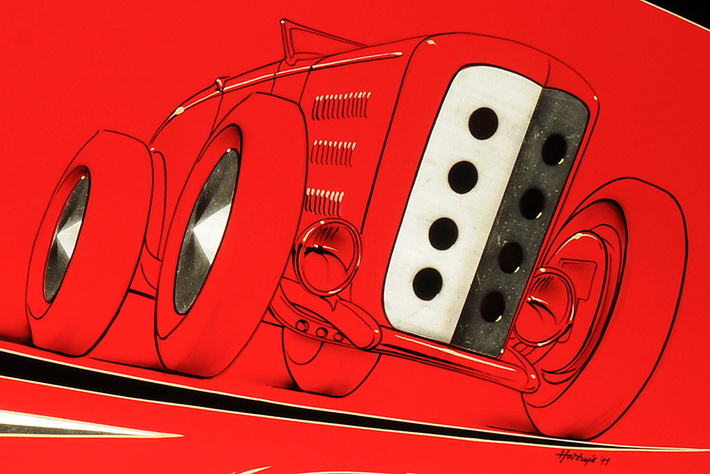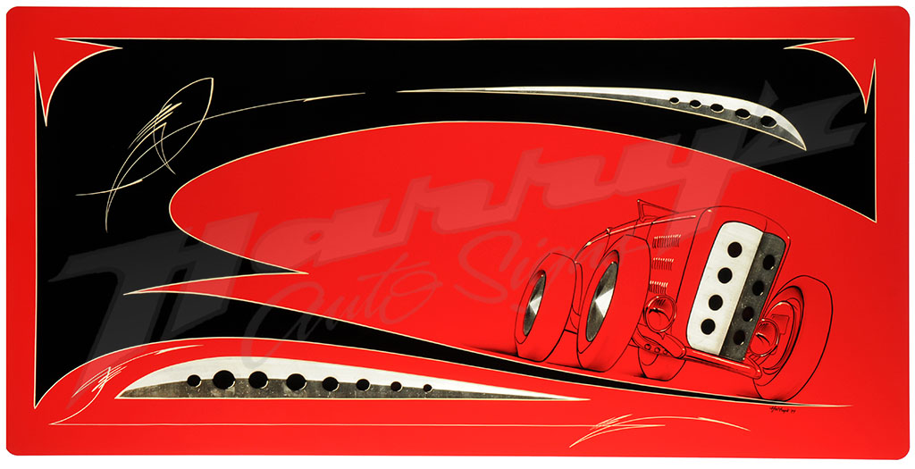 Classic Hot Rod style in this Erik “Harry” Tapley original. This is a photo quality digital reproduction of Harry’s original Deuce artwork.
